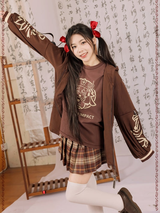 Hu Tao Inspired Brown Graphic T-shirt