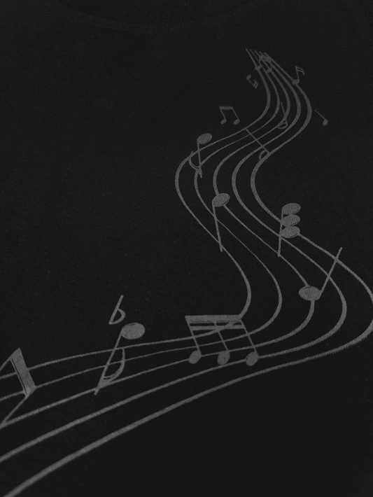 Black Round Neck Musical Note Print Cotton T-Shirt