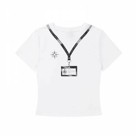 T-shirt White Round Neck Card Holder Print Slim-fitting