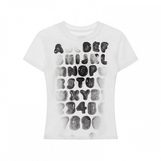 Y2K White Asymmetrical Letter Print Glamorous T-shirt Neckline