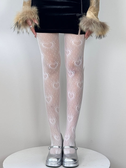 Y2K Details Pattern Diamond Black/White Tights Heart