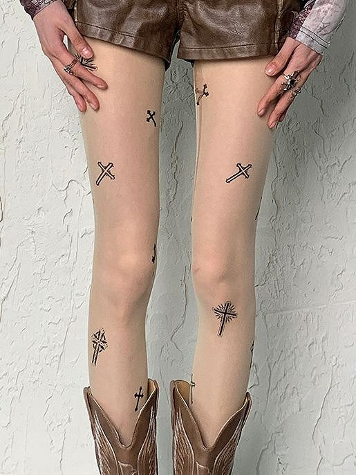 Tights Print Fashion Gyaru Cross Y2K Punk Nude Wasteland