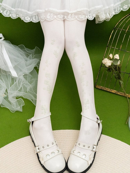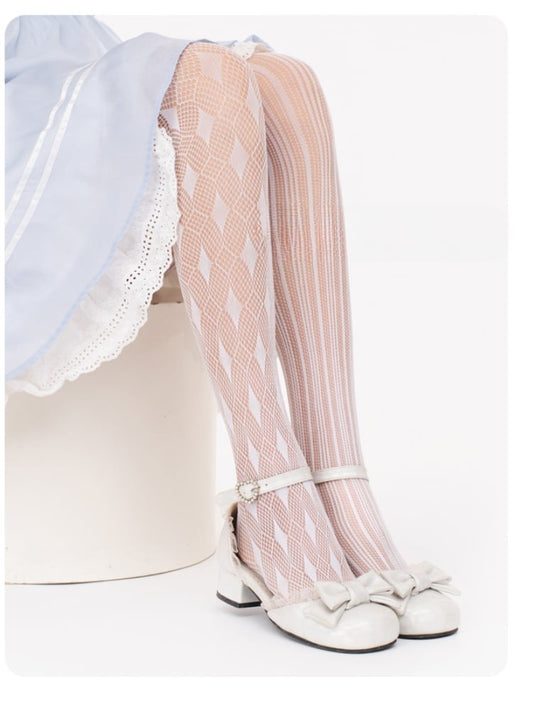 Tights White/Brown/Black/Gray Y2K Ribbon Print