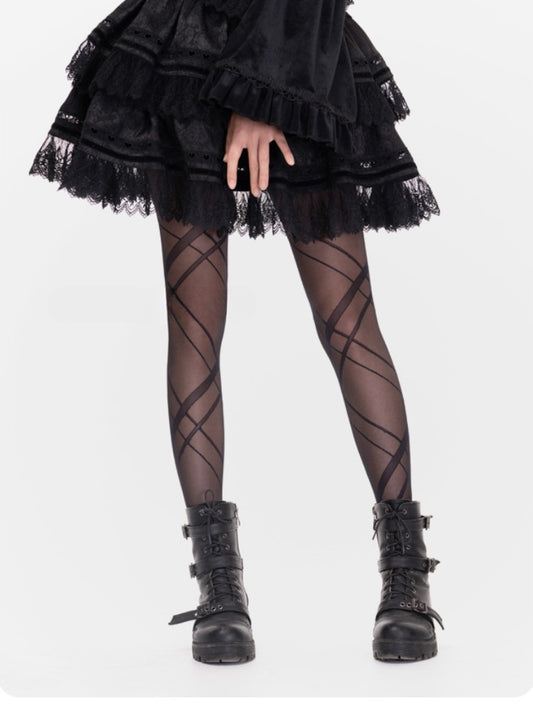Black Semi-sheer Crisscorss Banded Lolita Tights