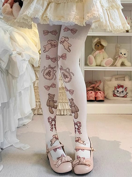 Brown/Pink Bunny and Bear Sweet Lolita Tights