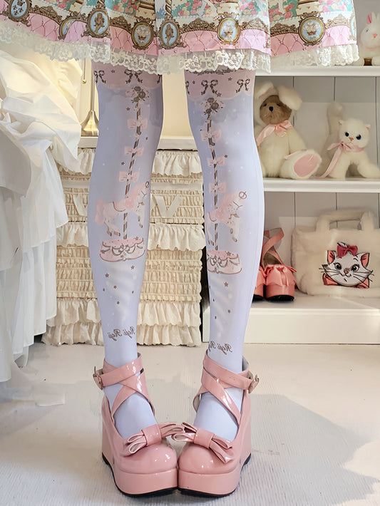 Pink/Blue Ribbon Print Sweet Lolita Tights