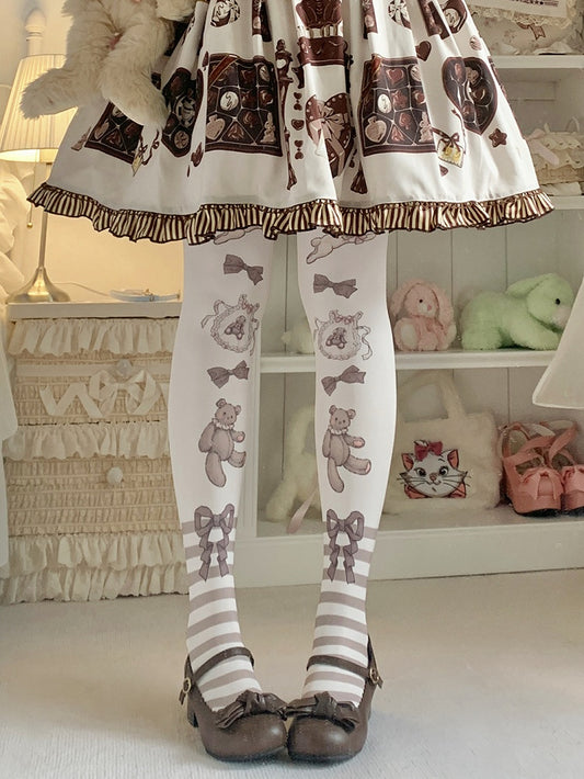 Brown/Pink Bunny and Bear Striped Sweet Lolita Tights