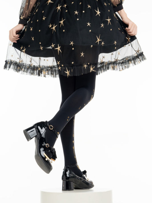 Blue Moon and Bowknot Print Lolita Velvet Tights