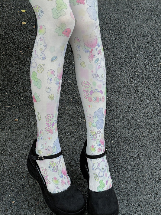 White/Light Coffee/Dark Grey/Black Polka-dot Pattern Tights