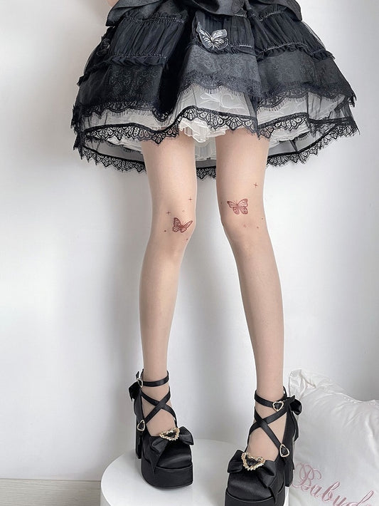 Black Semi-sheer Crisscorss Banded Print Lolita Tights