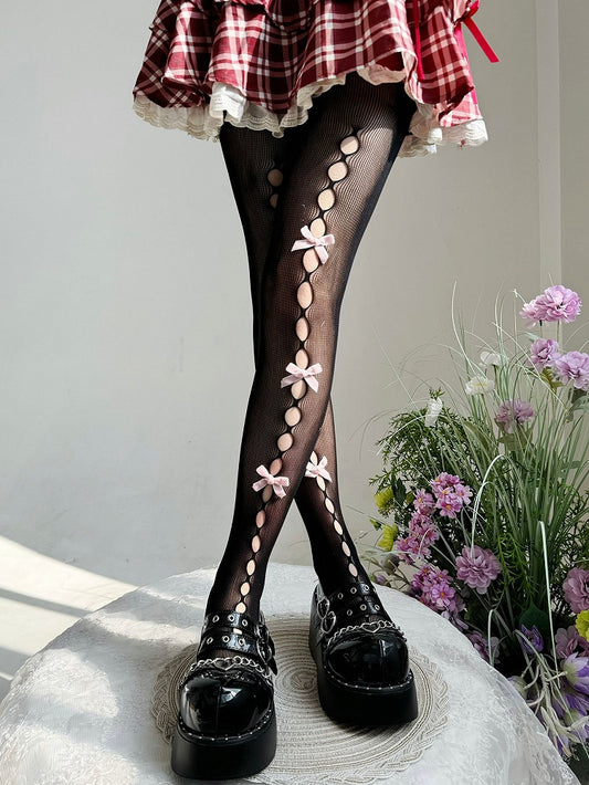 Black Semi-sheer Bowknot Cutout Lolita Tights