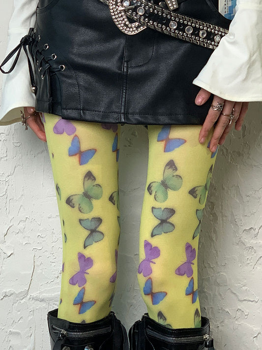 Light Green Y2K Butterfly Tights