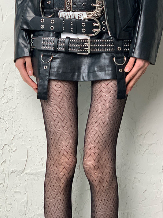 Gothic Black Y2K Diamond Fishnet Hollow-out Tights