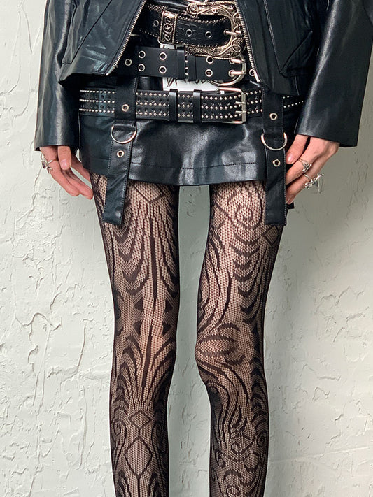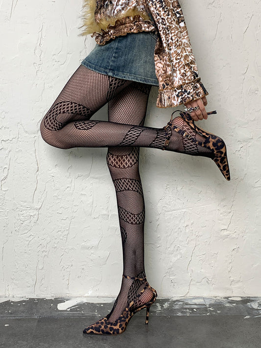 Black Y2K Snake Pattern Hollow-out Tights