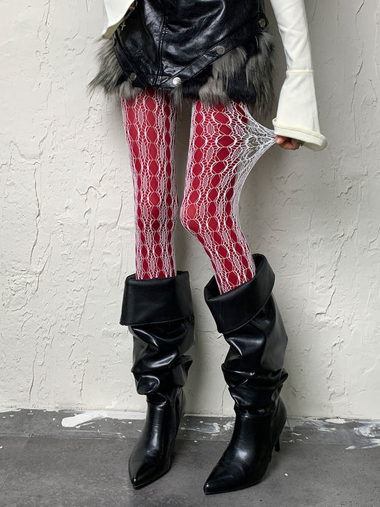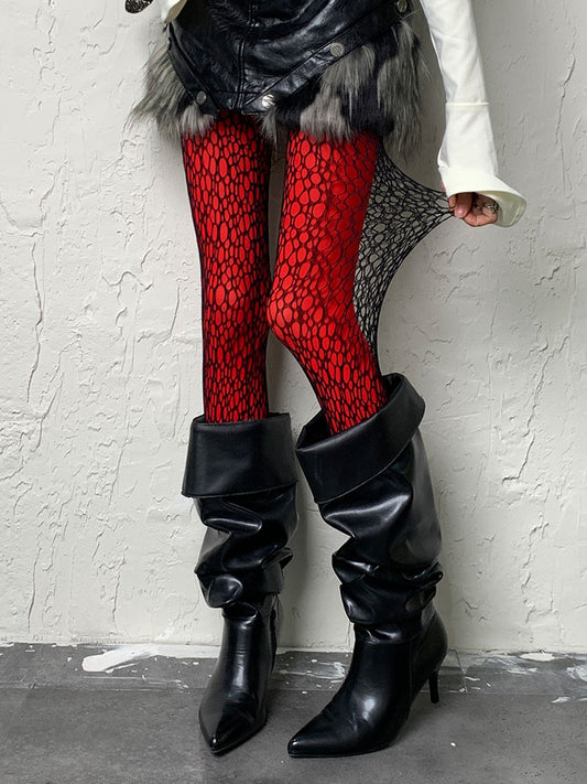 Punk Black Red Y2K Rose Pattern Hollow-out Tights