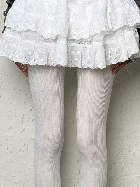 White Y2K Lace Hollow-out Tights
