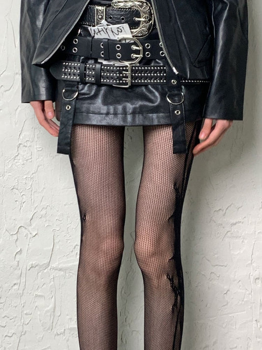 Dark Gothic Black Y2K Irregular Design Hollow-out Tights