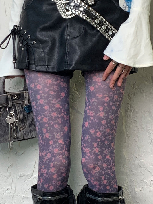 Gothic Gray-purple Y2K Floral Tights