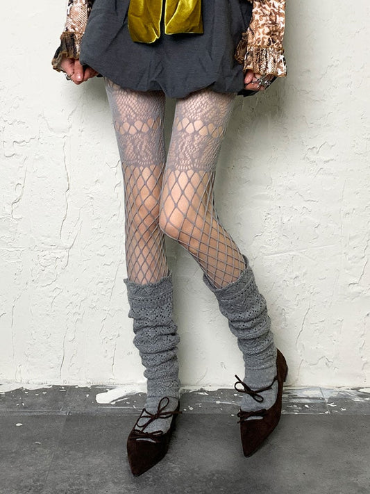 Grey Y2K Hollow-out Fishnet Tights