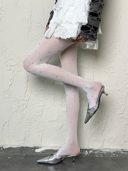 Y2K White Polka-dot Pattern Tights