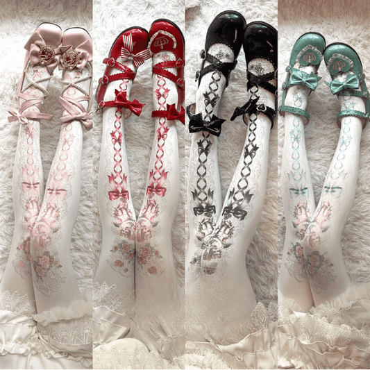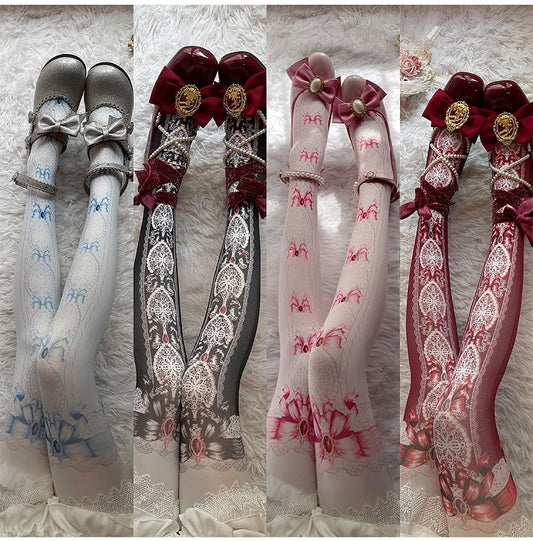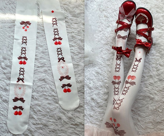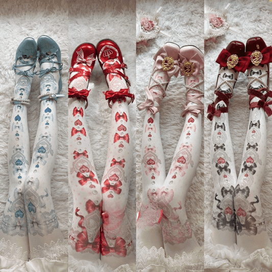 Sweetheart and Bowknot Print Sweet Lolita Tights