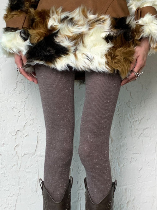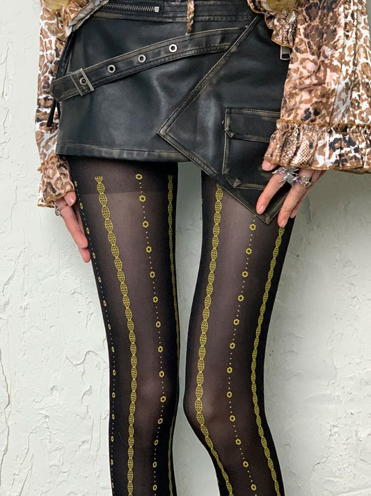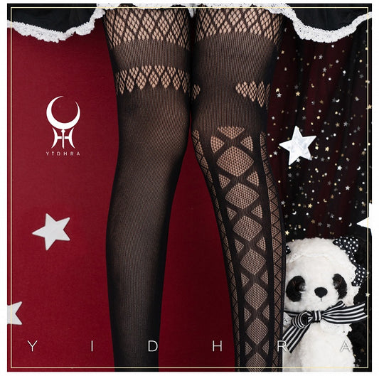 Dark Grey Y2K Diamond Pattern Hollow-out Tights