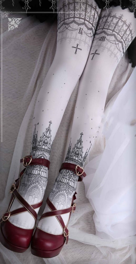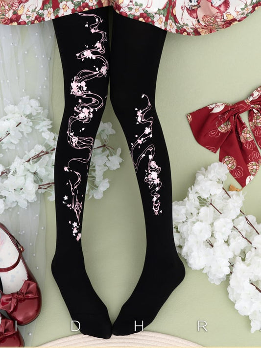 White Black Envelope and Floral Elegant Classic Lolita Tights