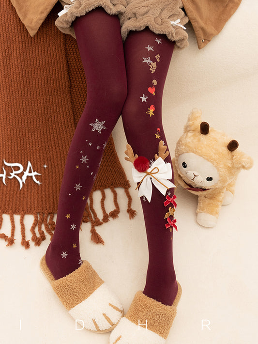 Snowflakes and Reindeer Print Christmas Vibes Lolita Tights