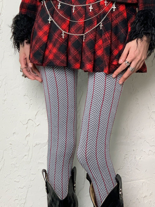 Pink Black and Gray Knee and Ankle Joints Velvet Tights