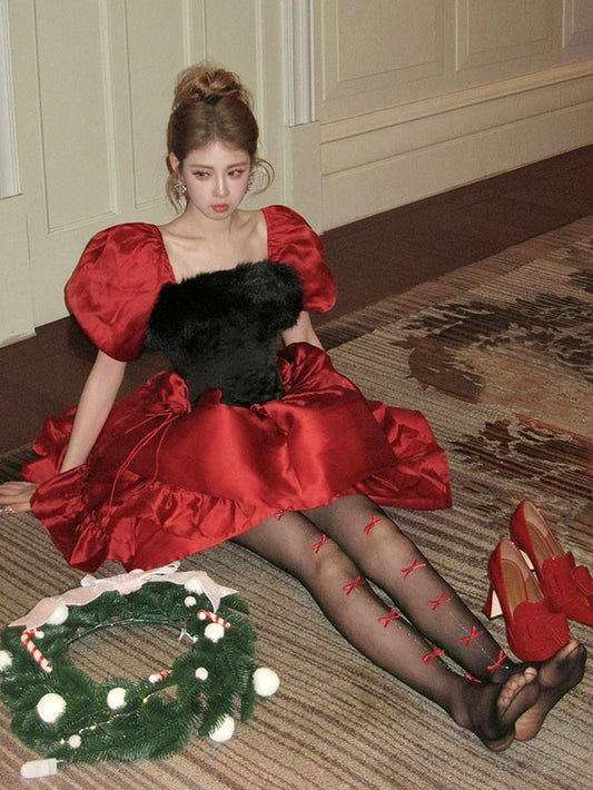 Tights Y2K Cut-out Black/Red/Rose Red Design