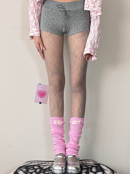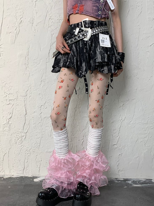 White Y2K + Pattern Multi-layered Set Floral Leg WhitePink Sleeves Lace Tights Trim