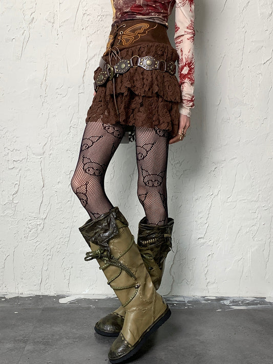 Tights Punk Wasteland Black/White/Gray/Brown Asymmetrical Design