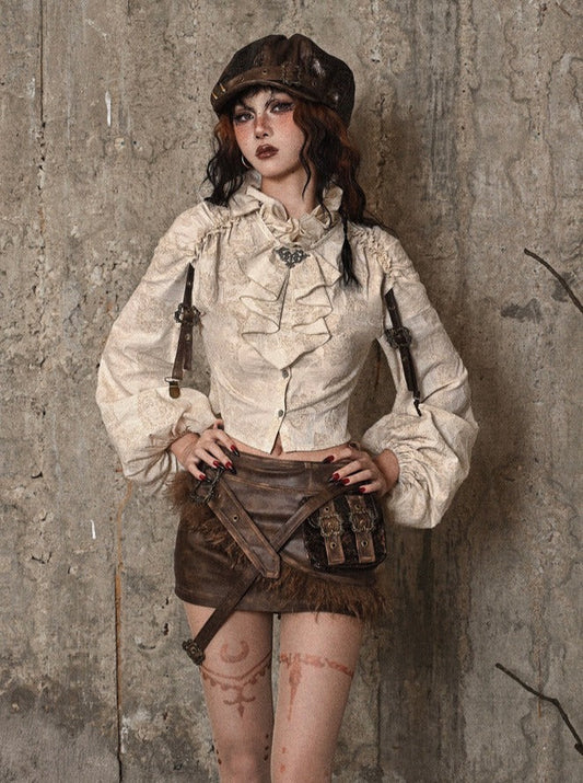 Dark Sleeve Puff Top Gothic Embroidery Lace