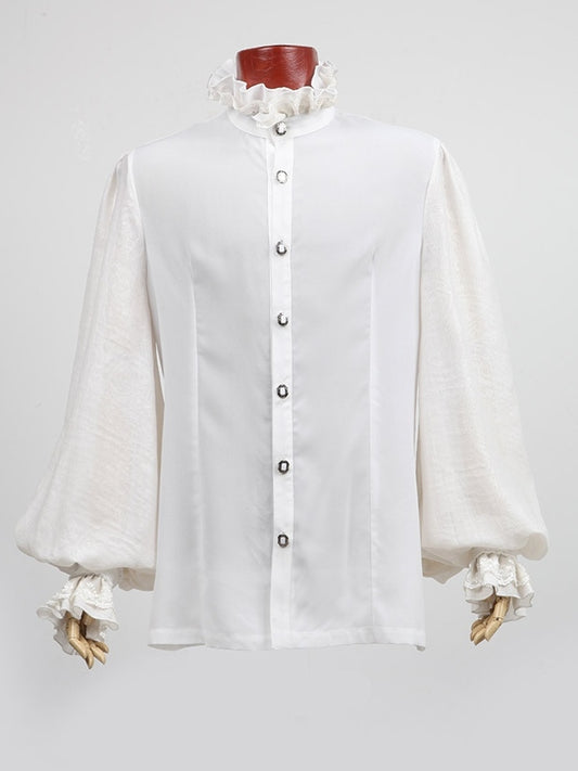 Asymmetrical Buttoned Placket Ouji with White Lolita Shirt Collar Vintage