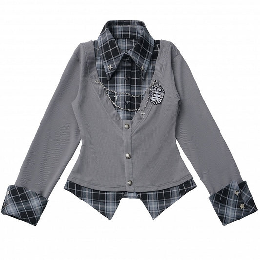 Academic Edgy Shirt Vibes Plaid Two-Piece Effortless Faux Gray –
