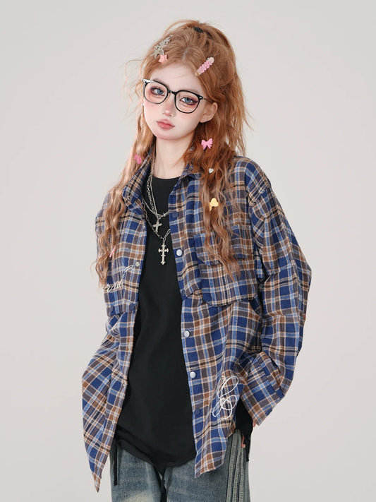 Collar Check Polo and Short Shirt Long Detachable Loose