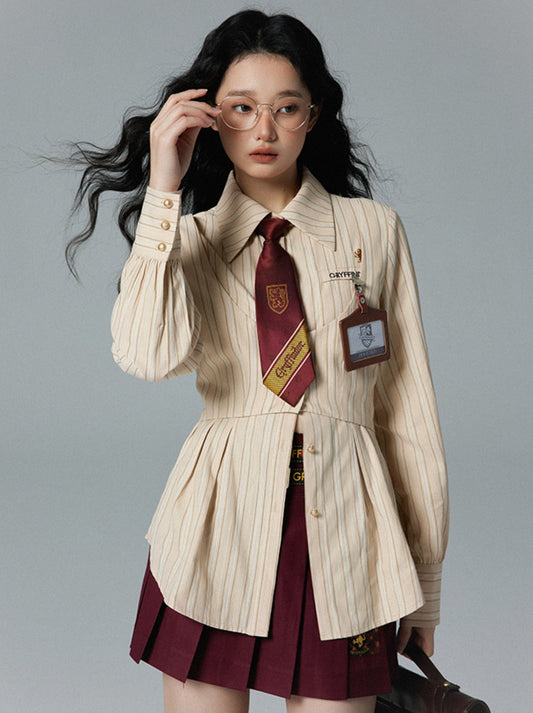 Retro Shirt Vest + Slim Skirt College Pleated