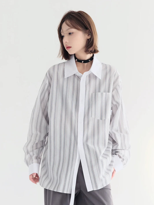 Shirt Striped Loose Sheer