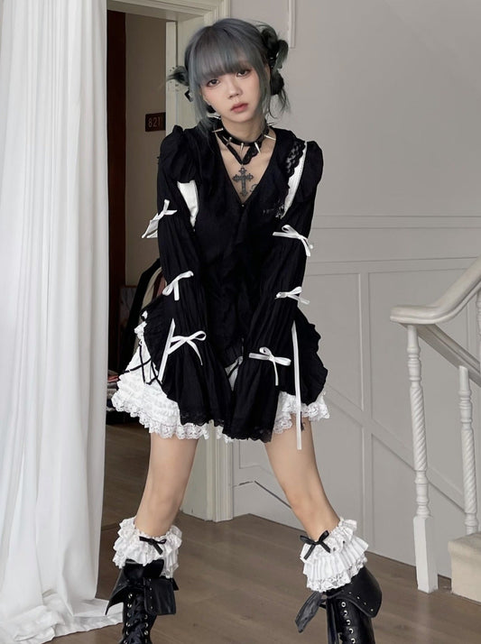 Waist Subculture Puff Shirt Dark Pattern Ribbon Sleeve Lace