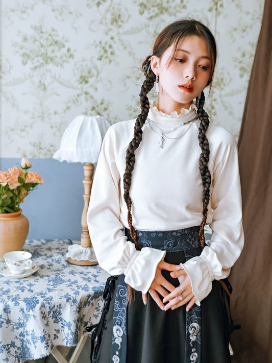 Sleeve Shirt Frilled Stand China Collar Lantern