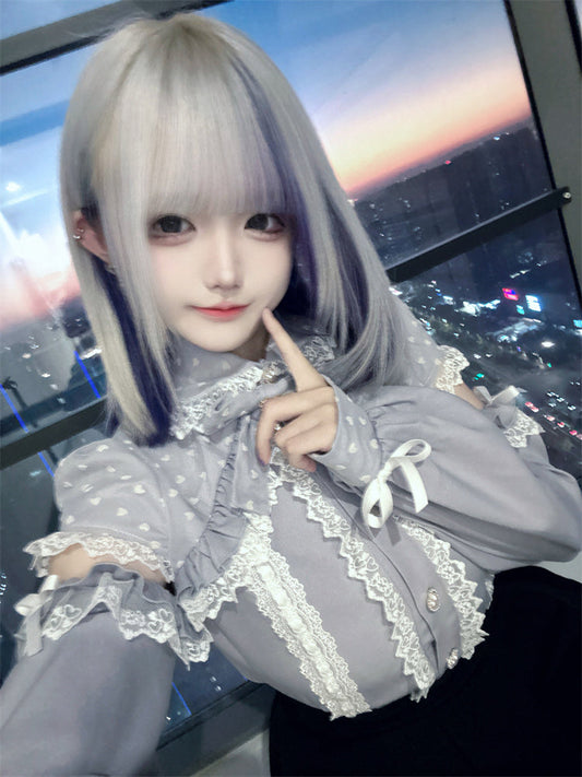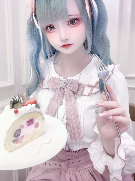 Edge Caviage Ribbon Collar Blouse Doll