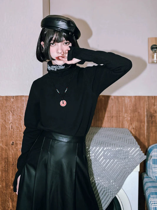 Dark Top Print Turtleneck Marble