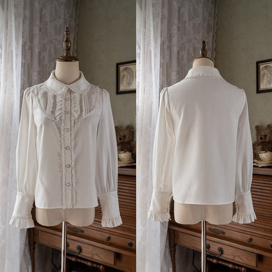 White Rounded Flat Collar Long Sleeves Shirt