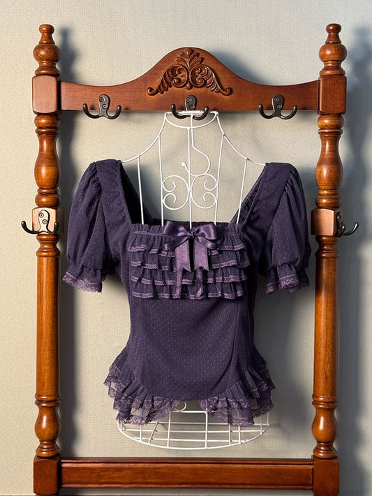Purple Square Neckline Short Sleeves Blouse