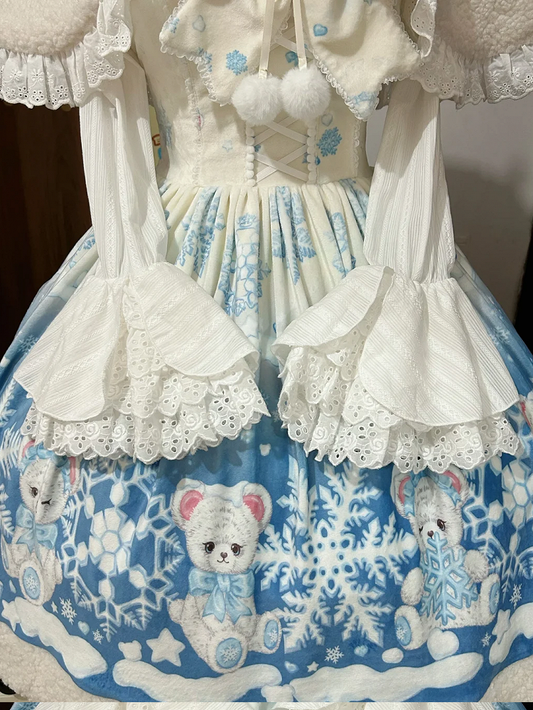 White Bow Accents Cape Lolita Coat with Lace Trim