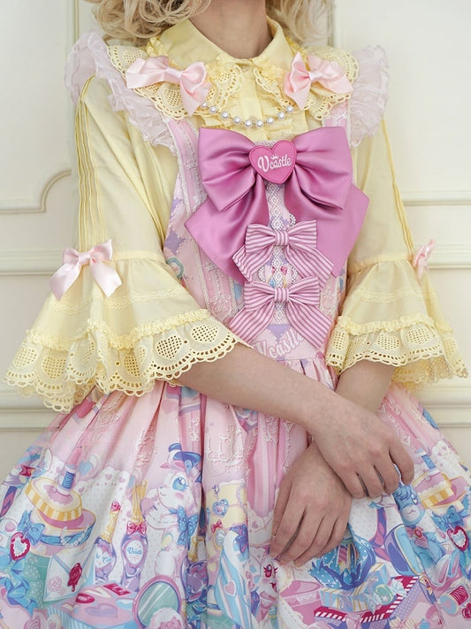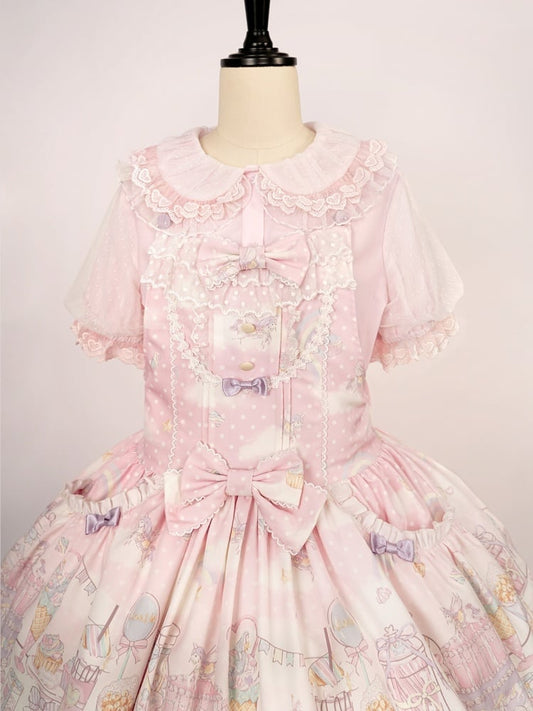 Light Pink Bow Accents Cape Lolita Coat with Lace Trim