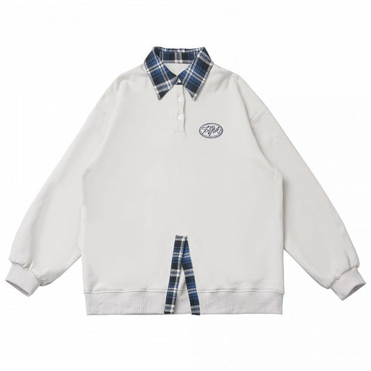 Polo Collar Fake Two-pieces White Sweat Shirt