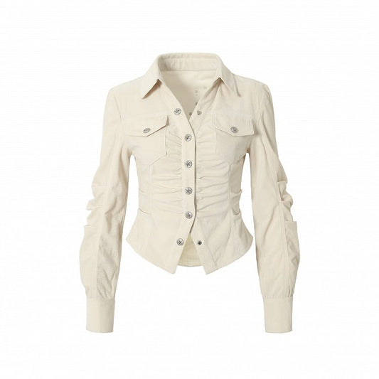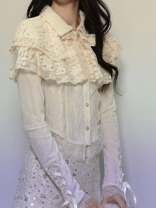Apricot Lace Shawl Cropped Shirt Lace-up Detail Sleeves