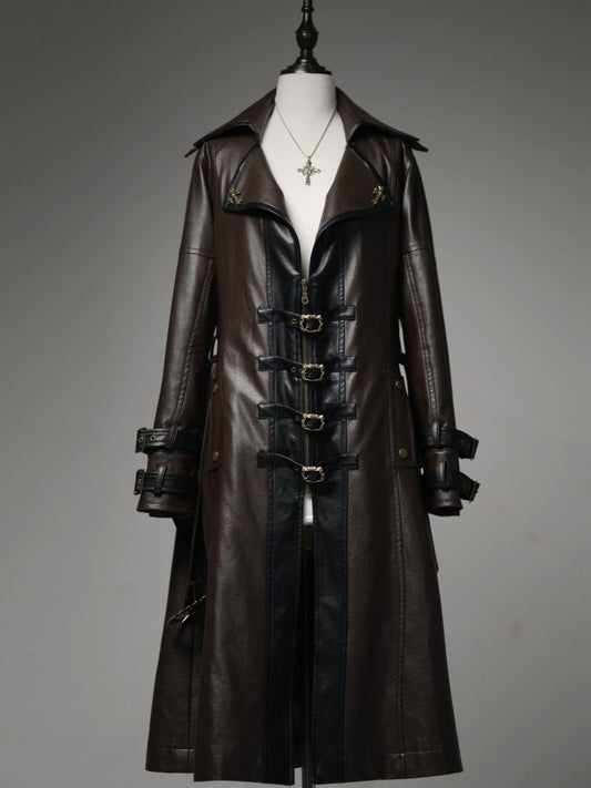 Midnight Hunter Brown Steampunk Lolita PU Leather Trench Coat