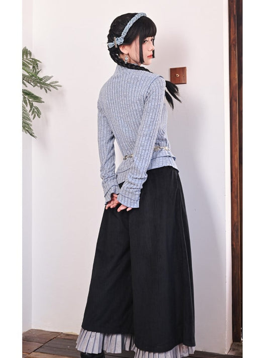 Detachable Lolita Ruffled Blue Shorts Ouji Shirt Set Warmers + Collar Dark Leg